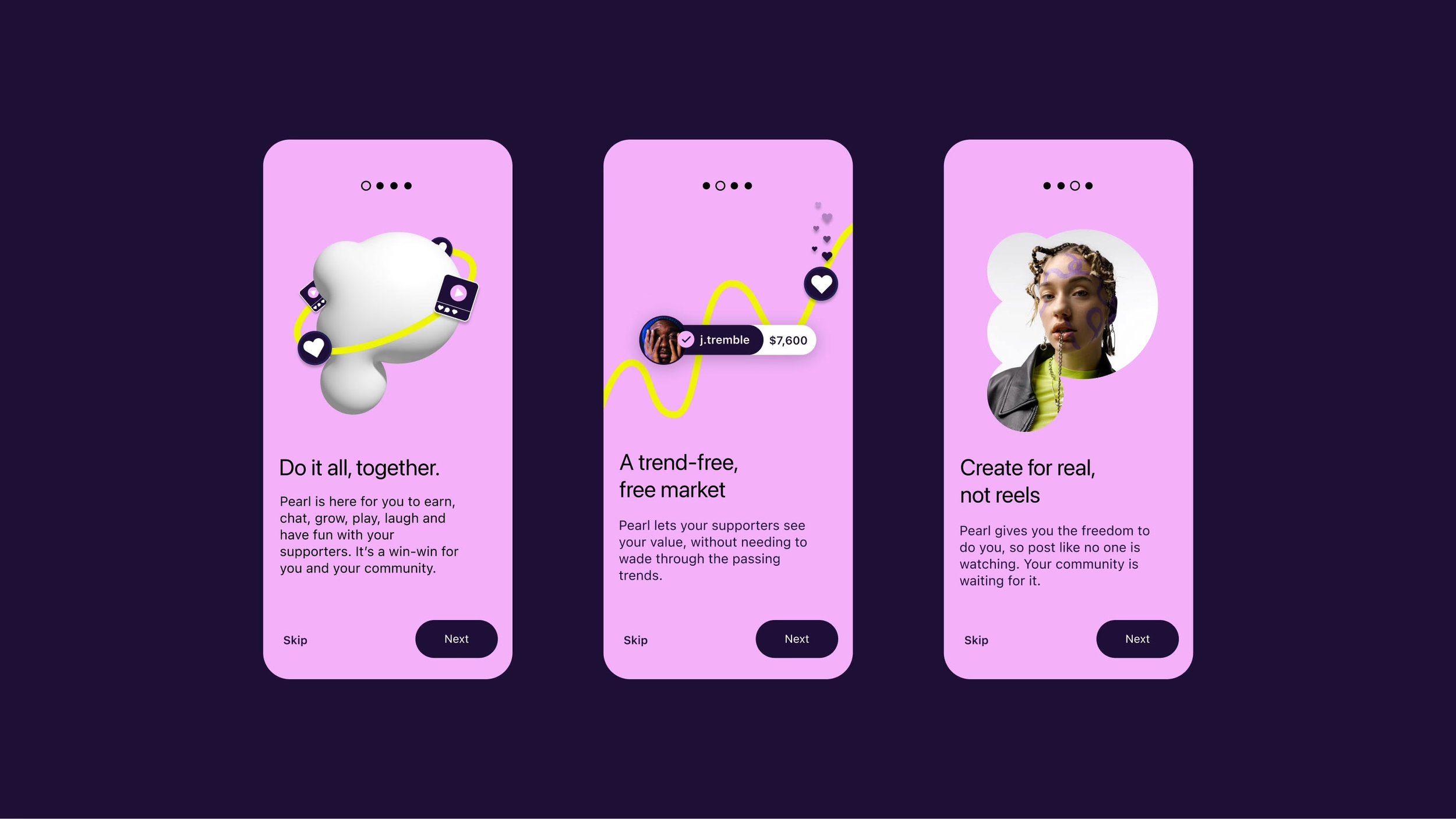 Establish Pearl as a trustworthy, creator-first Web3 brand, emphasizing transparency and creator empowerment.